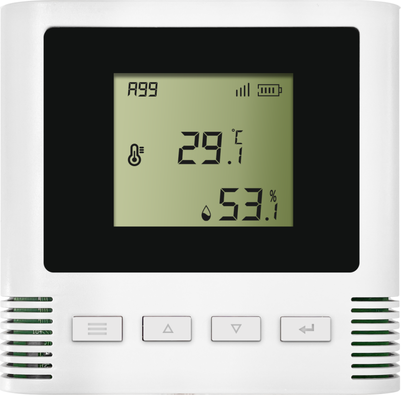 1. 主顯示界面為:溫度及濕度當前值、SIM信號強度、電池電量信息。
